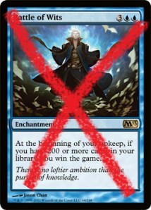 A draft/sealed deck is only 40 cards, minus the initial 7 card handsize + whatever amounts of cards were drawn. 3 Jace Mills should always do it. If not (Elixir of Immortality) , it’s nice to know you can have a hefty 5/5 flyer for 1 mana finish the job.