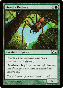 Keep your deathtouch guy going by really only using one card to take out their biggest guy. Usually a R/G trick with Acidic Slime or Deadly Recluse.