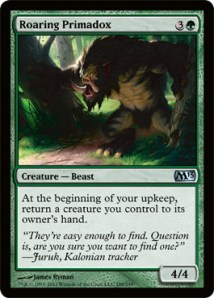 There is the unfortunate event that he is your only creature in play at the beginning of your upkeep and you have to return him to hand. That’s probable, but wouldn’t you still be in trouble if it was any other green creature (save maybe Elderscale Wurm).