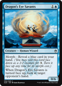 This nice wall can attack in the beginning as morph creature and then flip at virtually no cost when it’s time to go on defense. Plus you get a free peek vs counterspell decks to maybe guesstimate when the coast is clear to resolve threats. Again, you can do sweet no mana plays like reveal a Gush to flip this before you play it for its alternate cost to draw a couple of cards.