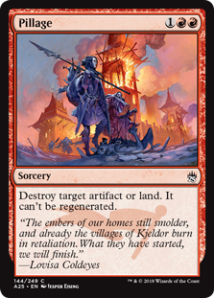 Pillage was a Ponza staple back in its heydey, but the same kind of strategy is not viable in Pauper as of now. Still, maybe some red decks can use it to kill boucnelands or problematic artifacts.