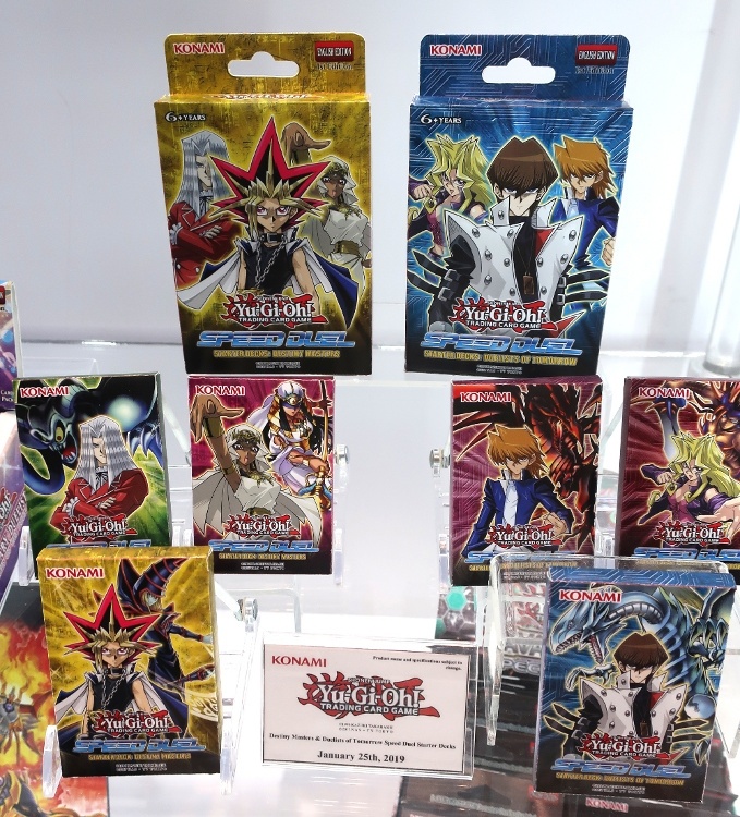 At New York Comic Con, ICv2 spoke with Konami Digital Entertainment Vice President, Card Business Yumi Hoashi, who had details on the Yu-Gi-Oh! TCG Speed Dueling format launching in January (see “Speed Dueling Comes to ‘Yu-Gi-Oh! TCG'”), and showed us both the Destiny Master and Duelists of Tomorrow Starter Decks and the three preconstructed character decks each contains.
