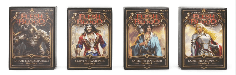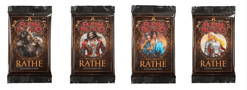 Flesh and Blood: Welcome to Rathe will come in 66-card pre-constructed Hero Decks which will retail for $10.99, and 15-card booster packs which are priced at $3.49. Boosters are packaged into 24-count displays which is enough to support an eight-person draft pod.
