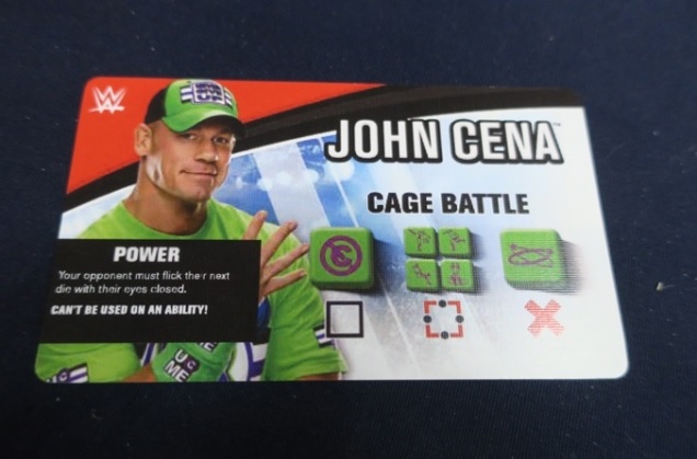 In Cage Battle, players can assume the roles of WWE Superstars, from past through present, in this new dice-flicking game where the game board becomes a cage match! Players take turns flicking dice into the ring that have a unique WWE Superstar color pattern at their opponent’s superstar. The goal of the cage match is to be the last one standing in this game of skill and strategy.