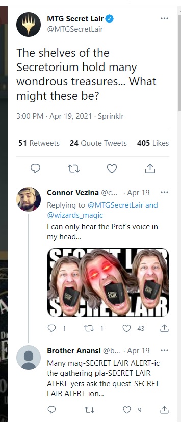 Wizards of the Coast released a new clue as to the what cards will be featured in the next Secret Lair: Drop Series release, which will likely be Strixhaven: School of Mages-themed.