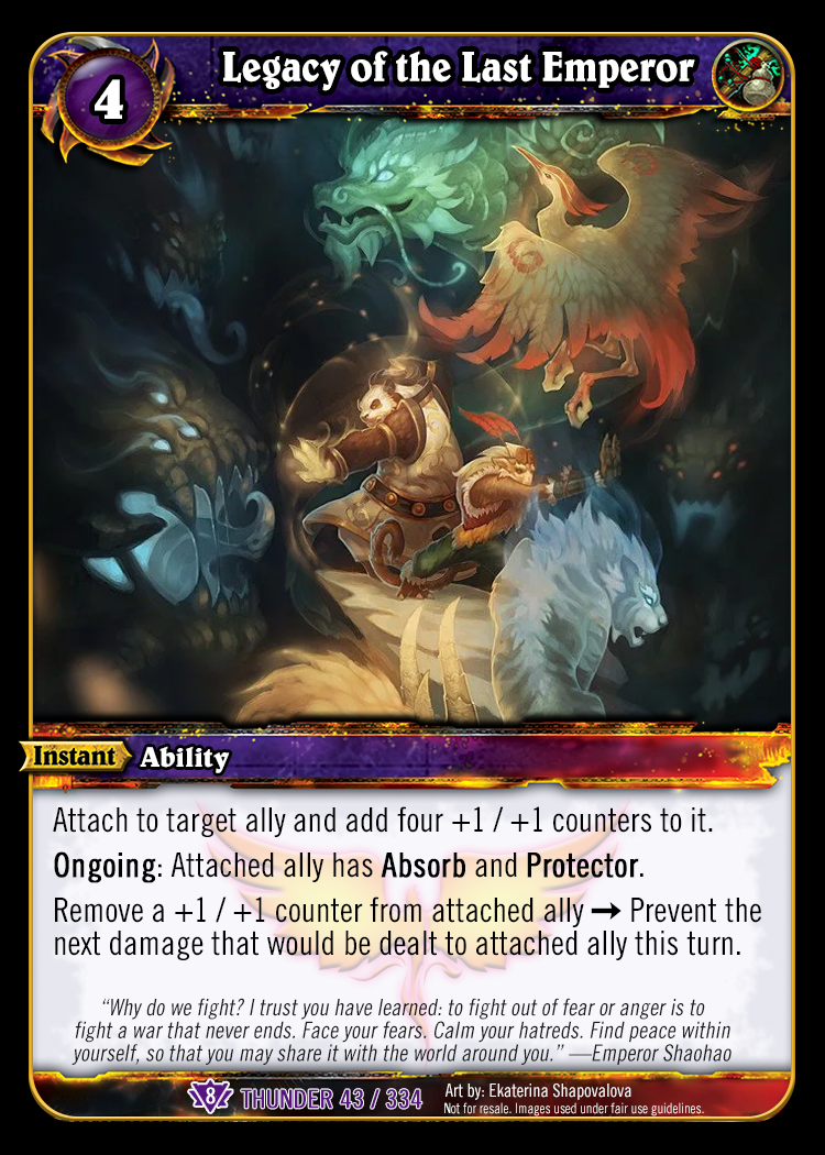 Xing-Ho, Breath of Yu’lon: Changed cost from 3 to 4; now only affects non-combat magical damage; Unpreventable damage modifier turned into activation power; Armor value changed from 1 to 0.