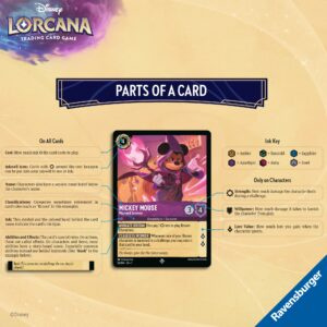 Ravensburger has released a Quick Start rules set for Disney Lorcana, the new Disney-themed TCG, to the public. This release of the Quick Start rules set occurred after a partial rules set was leaked to the public via a cover story in early-arriving copies of Game Trade Magazine #279. The new TCG carries some mechanical elements of other popular TCGs all wrapped up in Disney-themed skin. In Disney Lorcana, the goal of the game is to be the first player to earn 20 or more Lore. Decks contain a minimum of 60 cards with only four copies of each card per deck, and decks can only consist of one to two types of Inks. Cards have a symbol and colored band on them indicating their Ink type, similar to color types in Magic: The Gathering.