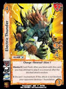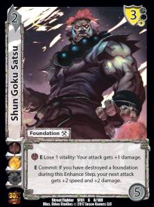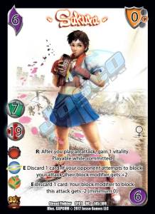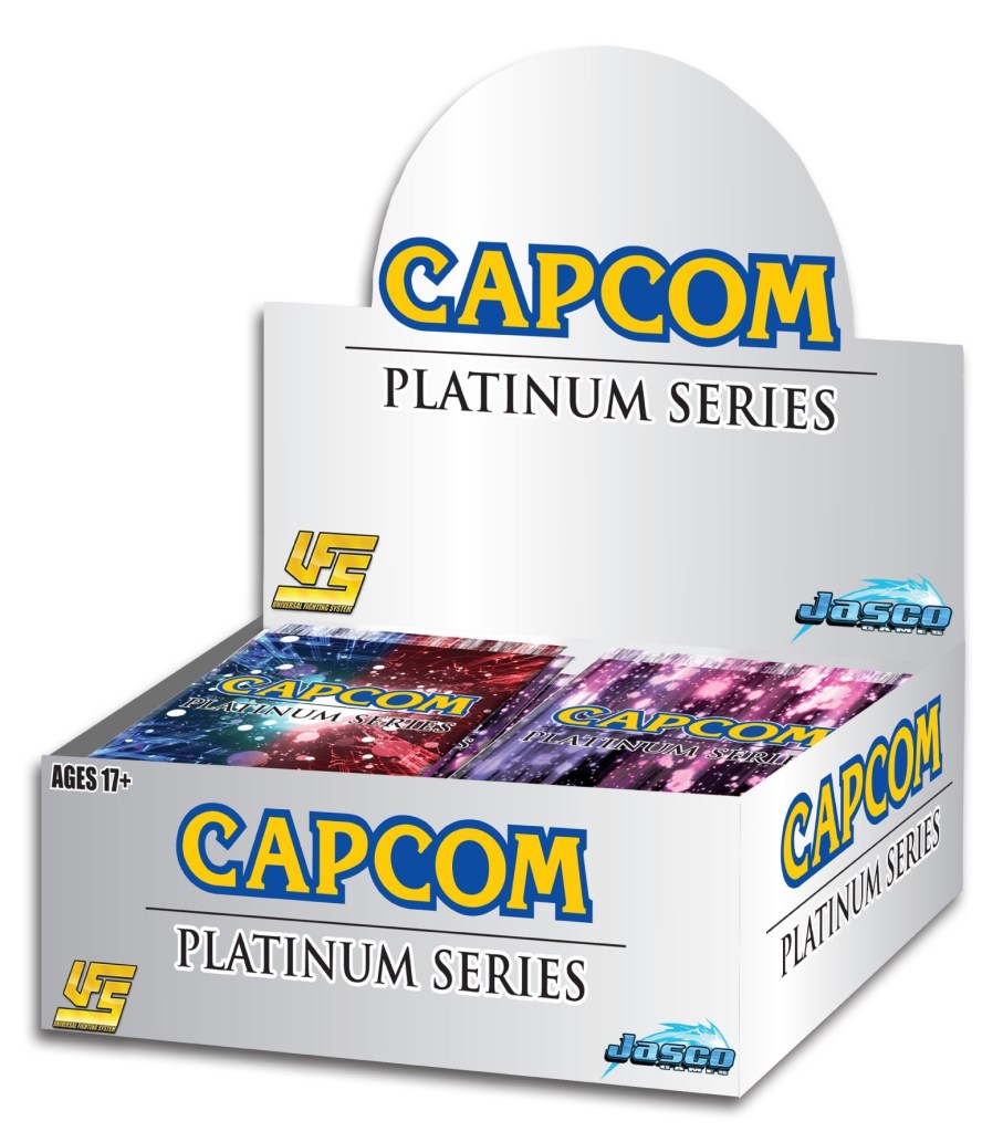 Fans of earlier UFS releases can get a boost with the Capcom Platinum Series Booster Display. The 24 10-card packs in this display feature cards from earlier UFS releases, including the Mega Man Tins, Darkstalkers Tins, Mega Man: Rise of the Masters, and Darkstalkers: Warriors of the Night (see “New ‘Mega Man’ and ‘Darkstalkers’ ‘UFS’ Releases”). All of the cards in this set are printed with new card frames and feature foil paper. MSRP is $5.99 per booster.