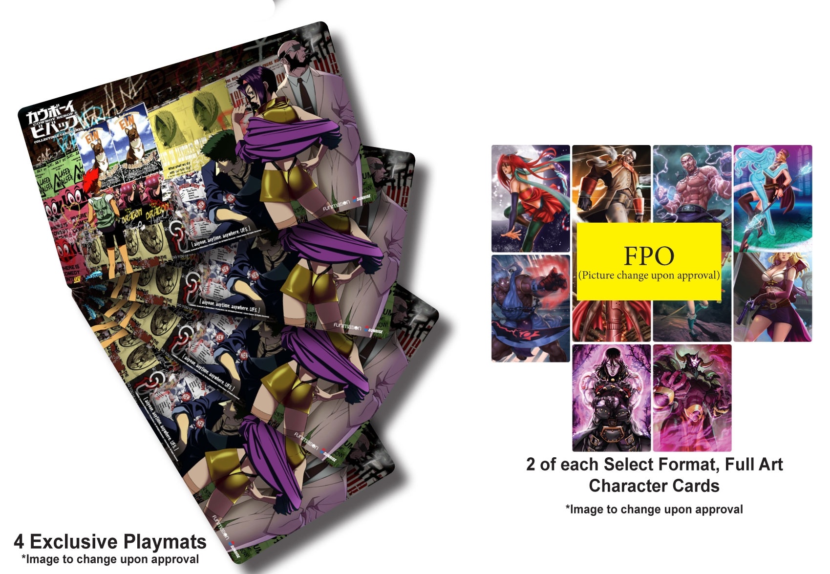 Jasco will support the release with two different Cowboy Bebop Collectible Card Game kits for stores that want to host events that coincide with the release of the new expansion. Both kits include four exclusive Cowboy Bebop playmats and two each of 10 full-art character cards from the expansion. The Pre-Release Kit option also comes with eight booster displays, while the Release Kit also includes six booster displays and eight turbo boxes.