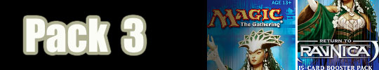 Pack 3, pick 2: Remember when I said I wanted Selesnya Charm more than anything? Well, this is #2 on the list of selesnya non-rares. Centaur Glade on Legs with another random upside.
